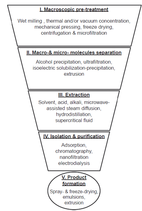Esta pirámide está relacionada con la separación, concentración y purificación de un elemento base de valor añadido (sea nutriente, compuesto bioactivo o metal pesado) y asegura la gestión optimizada de las tecnologías disponibles, definiendo una especie de unidad o concepto básico dentro de las estrategias de economía circular y, por ende, del concepto de biorrefinería.
